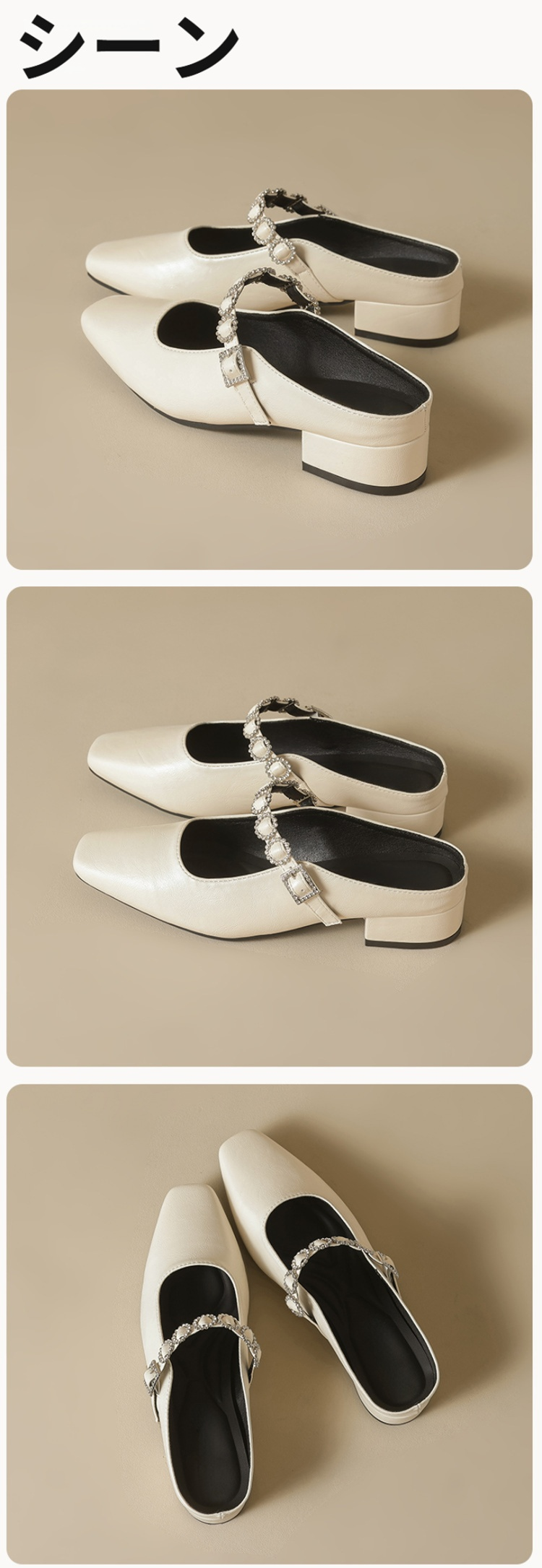 フレンチスタイルのレディースクローズドトゥハーフスリッパ正面画像